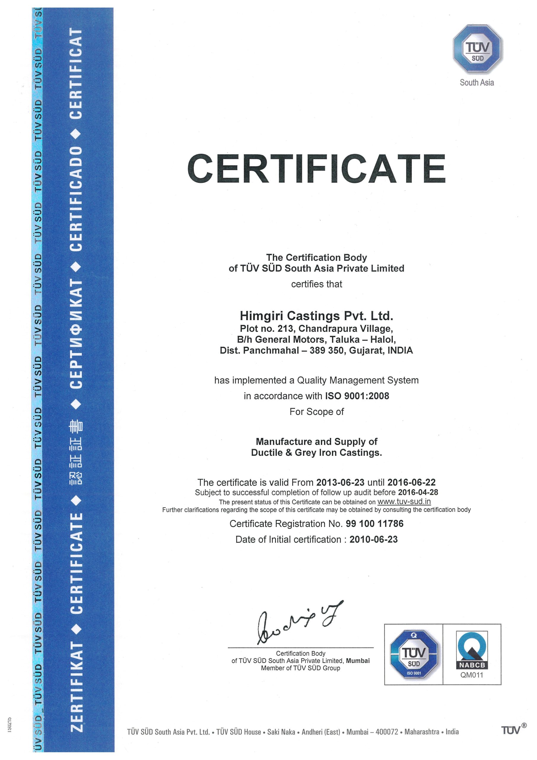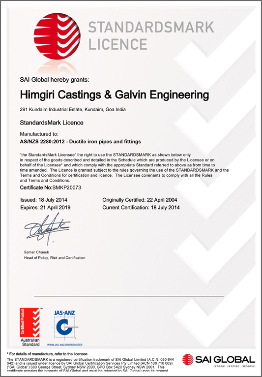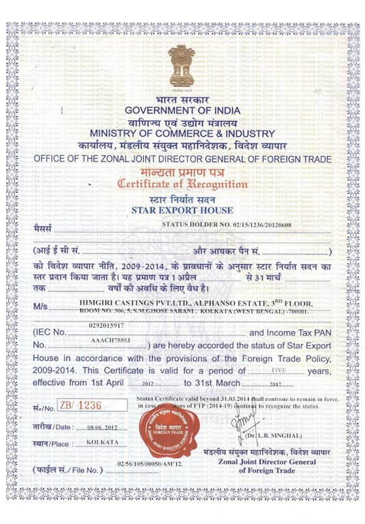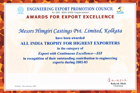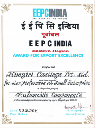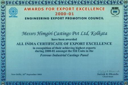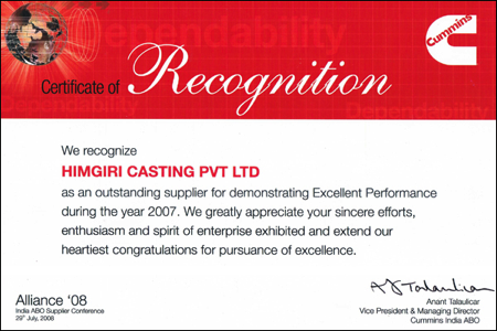 At Himcast delivering customer delight through high quality and precision products is our top most priority. And to achieve this objective we have left no stone unturned. Here below are a list of our quality certifications and awards received.