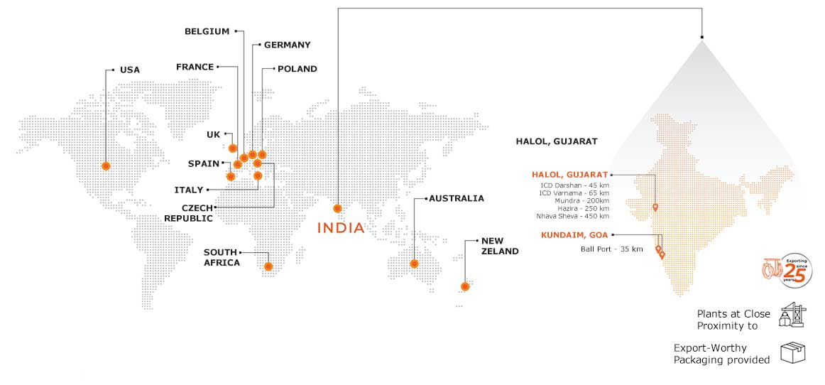 We ensure our factory meets all international standards and provides customers high-quality products in export-worthy packing. Our highly certified plants are located at close proximity to ports making exports even more seamless.